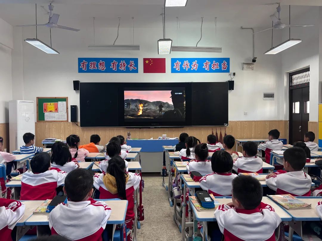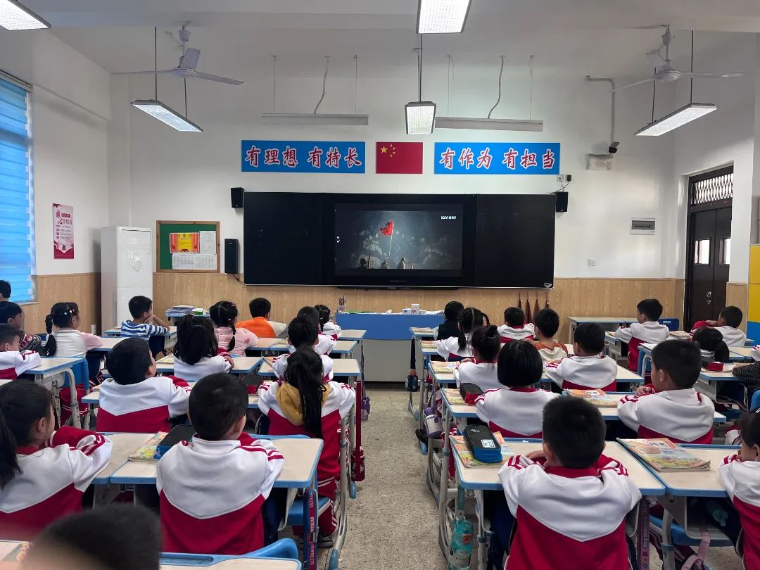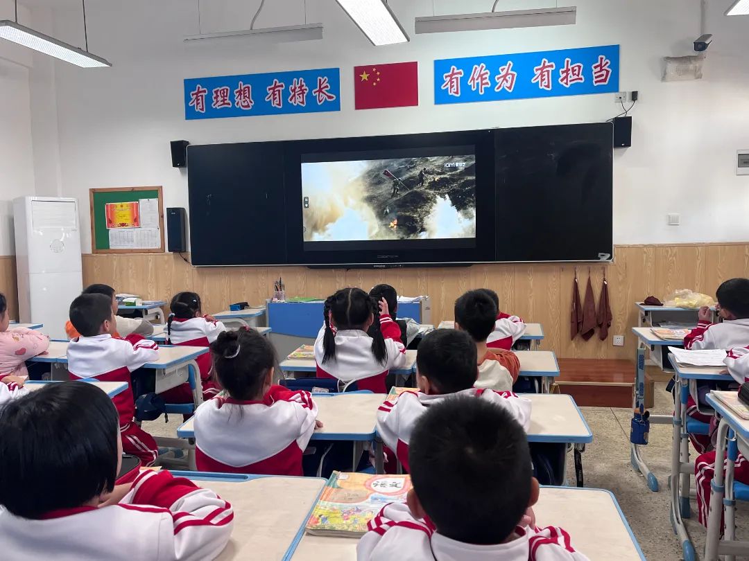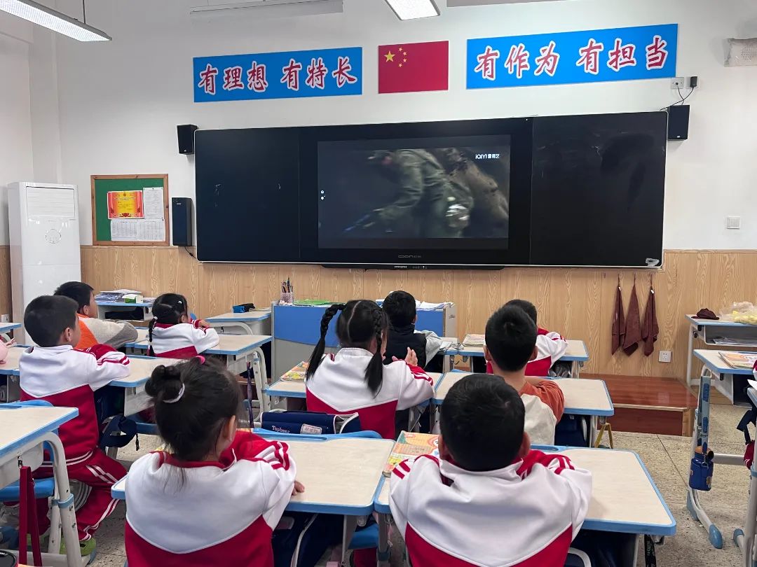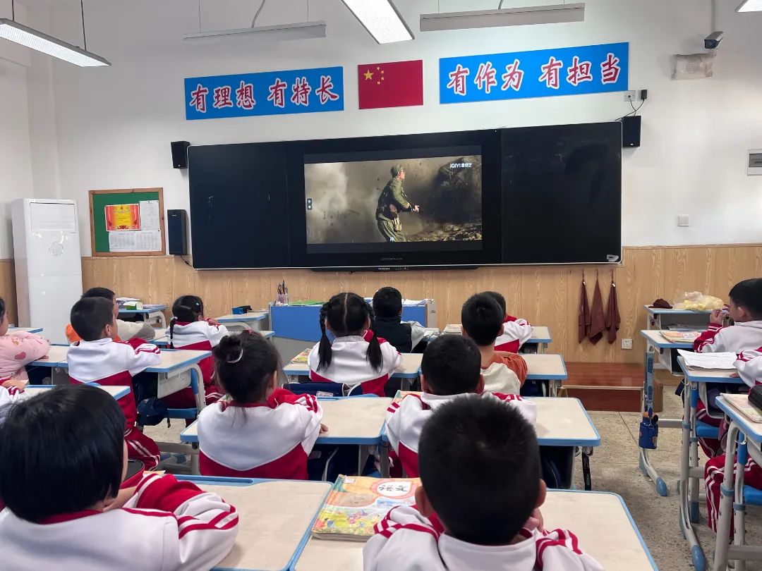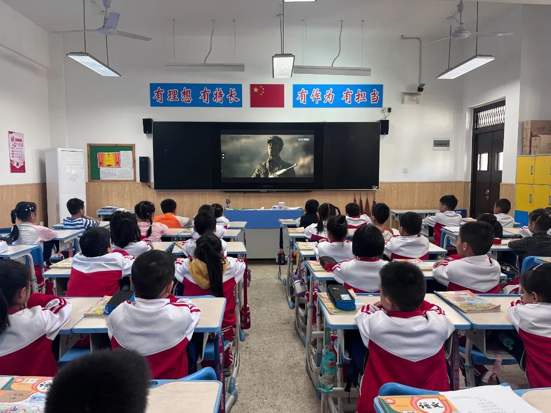 同学们观看红色电影,回顾艰难的抗美援朝的历史,感受英勇善战、不怕牺牲的中国人民志愿军精神。