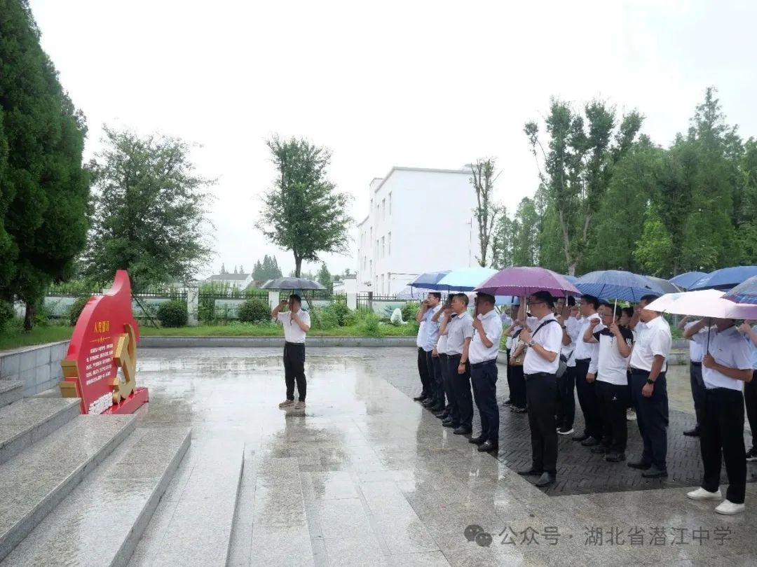 为庆祝中国共产党成立104周年,深入贯彻中央八项规定精神学习教育,弘扬三大精神,发扬革命传统,传承红色基因,赓续共产党人精神血脉,2025年6月27日,潜江中学组织党员赴拖船埠红色教育基地开展庆祝中国共产党成立104周年活动。