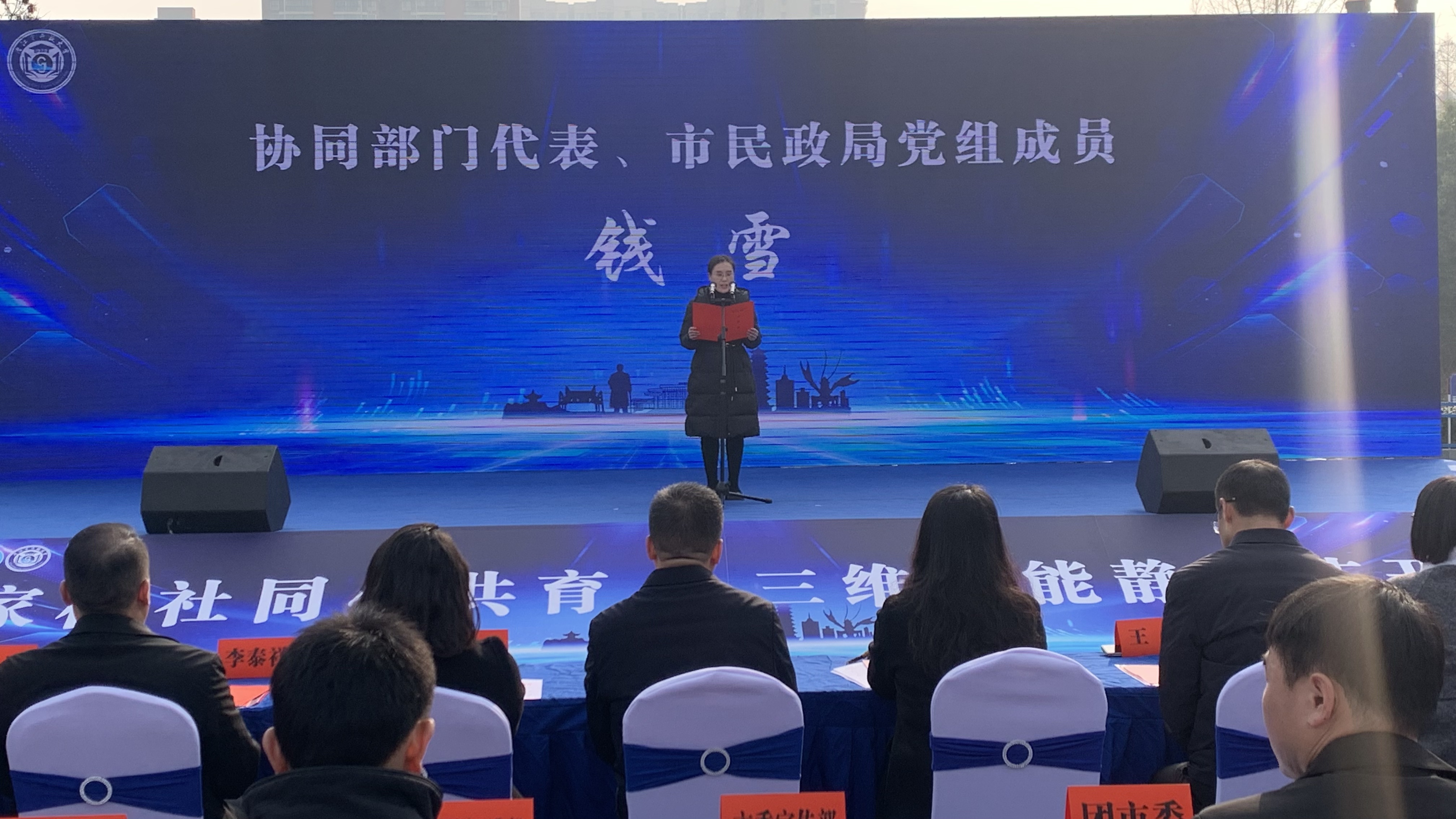 情景朗诵《协同育新苗・共绘同心圆》生动诠释了家校社协同育人的初心使命。市民政局党组成员钱雪代表协同部门、小南门社区负责人杨洲代表试点社区、心理健康专家郑雅晴代表三维赋能专家依次发言,分别从部门履职、社区实践、专业支撑角度,表达了参与协同育人工作的责任担当与行动决心。