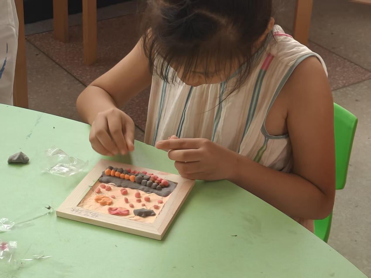 在制作过程中,孩子们不时相互交流创意,分享制作心得,活动现场洋溢着欢乐的合作氛围。经过一个多小时的精心创作,10幅各具特色的彩泥画框作品陆续完成,每一幅都展现着孩子们独特的想象力与创造力。