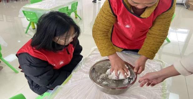 活动伊始,童伴妈妈与志愿者们结合马年新春元素,为孩子们讲述了元宵节的由来与传统习俗。“正月十五吃汤圆,寓意着新的一年全家团团圆圆、平平安安。”随着讲解结束,热闹的搓汤圆环节正式开始,现场桌案上,雪白的糯米粉、纯净水,在童伴妈妈的示范引导下,孩子们纷纷挽起袖口,从取面、捏揉再到搓圆,每一个步骤都充满了童趣。孩子们很快就搓出了圆润饱满的汤圆,引得现场阵阵欢笑。