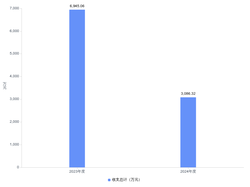 2024年度收、支总计均为3086.32万元。与2023年度相比,收、支总计减少3858.74万元,下降55.6%,主要原因是项目减少。