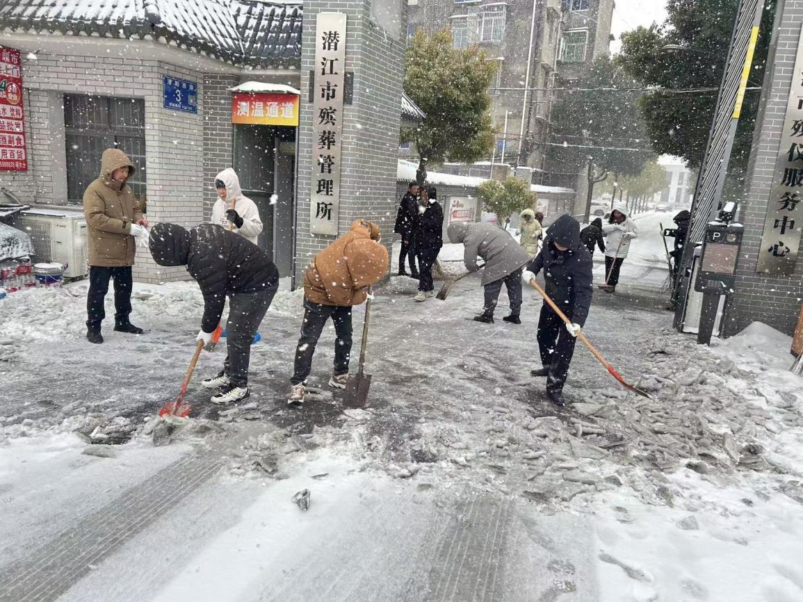 1月20日,恶劣雨雪天气侵袭,给群众出行和殡葬服务保障工作带来严峻挑战。潜江市殡葬管理所闻令而动、迅速部署,组织全体干部职工投身抗雪保畅一线,同时协调专业铲雪车进场开展道路除雪工作。机械作业与人工配合高效联动,铲雪车开道清除主干道大面积积雪,干部职工挥锹铲冰、抛撒融雪盐,及时消除路面积雪积冰隐患,用实干担当为办丧群众铺就安全畅通的出行路。