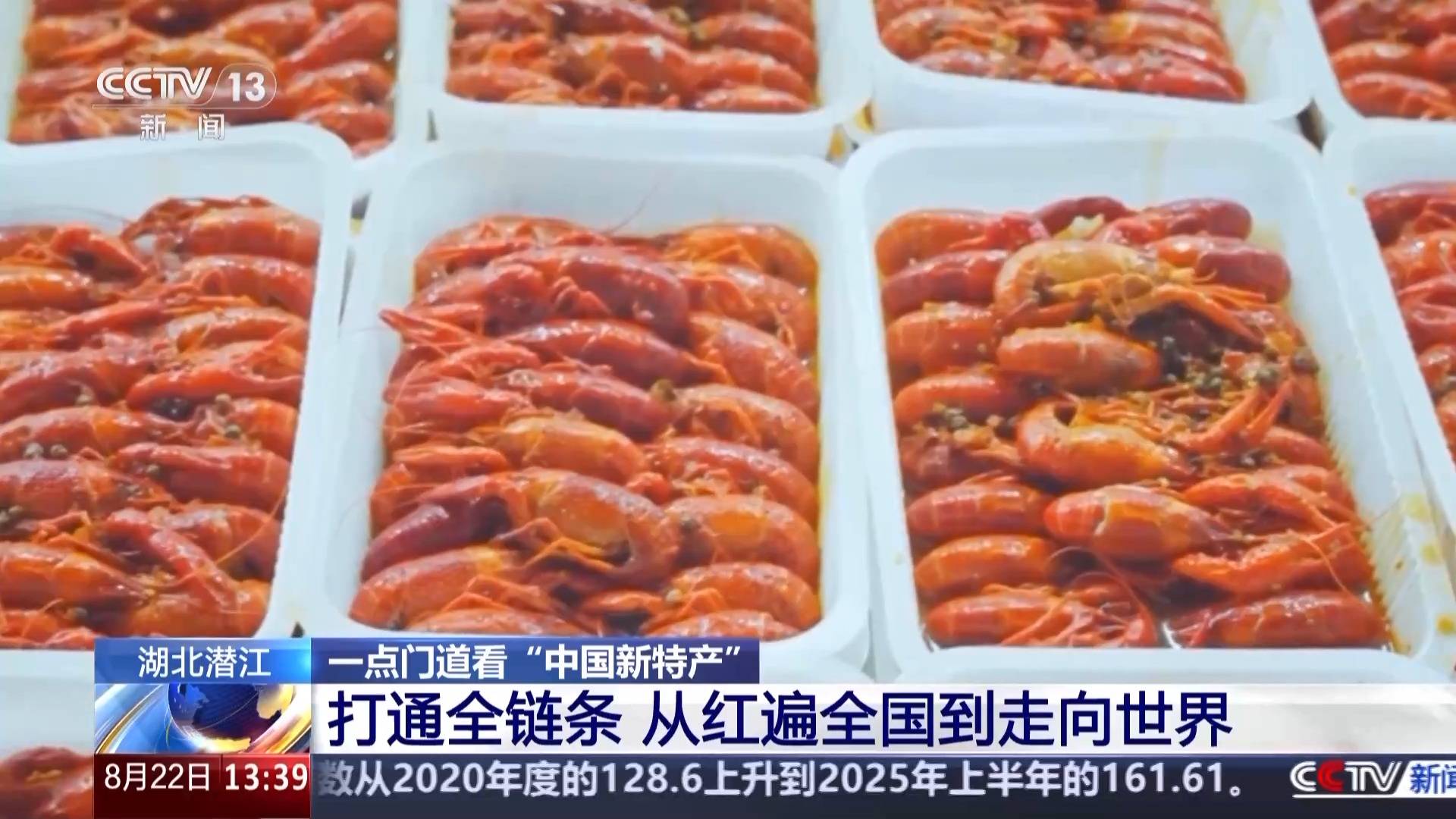 从这里出发,依靠沪渝高速、234国道、318国道等交通动脉,潜江小龙虾的物流直达专线,只需4到14小时就能把鲜活的潜江小龙虾送到全国600多个城市、1200多个服务网点。作为全国最大的小龙虾交易中心,2025年上半年,这里的鲜活小龙虾交易量高达17.7万吨,交易产值更是达到75.27亿元。