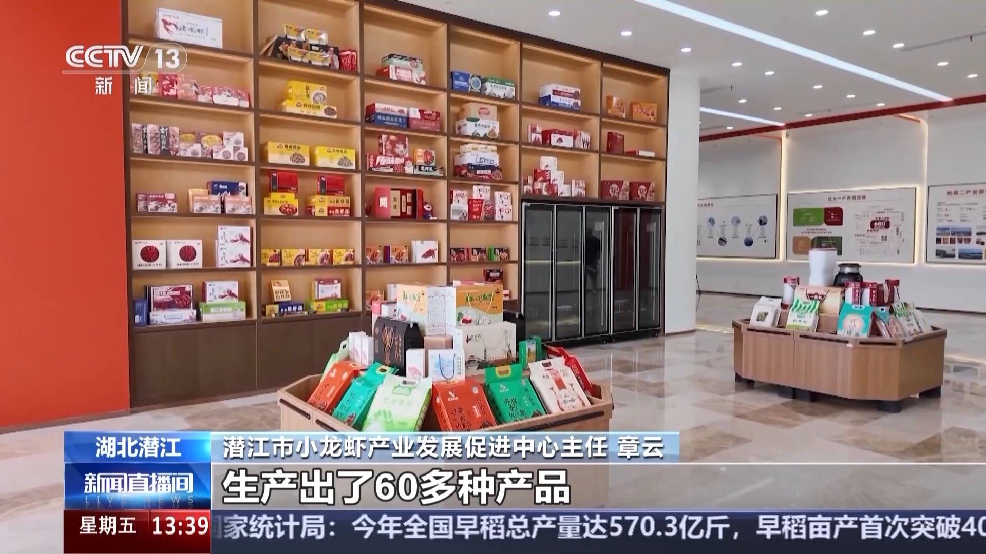 潜江市小龙虾产业发展促进中心主任 章云:截至目前,潜江小龙虾的规模以上加工企业共有19家,生产出了60多种产品,组成了小龙虾产品矩阵,建立了涵盖餐饮、食品、医疗等多领域的全产业链体系。可以说,从田间到餐桌,从国内到国际,潜江将这小小的一只虾“吃干榨净”,综合(年)产值已经突破了870亿元。
