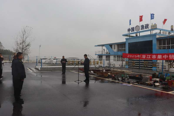活动现场,56套电鱼设备、256套禁用渔具、19根违规钓具及13艘涉渔“三无”船舶被集中公开销毁,以鲜明态度彰显了潜江打击非法捕捞、维护禁捕秩序的坚定决心,对违法犯罪分子形成强力震慑,为群众上了一堂生动的警示教育课。