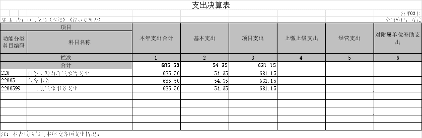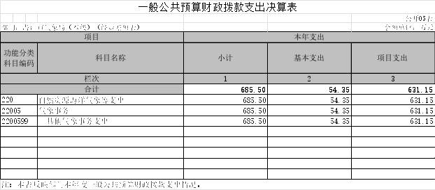 2022年度一般公共预算财政拨款支出年初预算为 万元,支出决算为 685.5 万元,完成年初预算的 100 %。其中:自然资源海洋气象支出(类)。年初预算为 万元,支出决算为 685.5 万元,完成年初预算的 100 %,