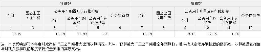 2.公务用车购置及运行费支出决算为19.19万元,完成年初预算的100%;其中: