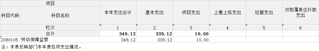 2024年度一般公共预算财政拨款支出年初预算为349.36万元,支出决算为344.88万元,完成年初预算的98.72%。其中:劳动保障监察支出344.88万元。