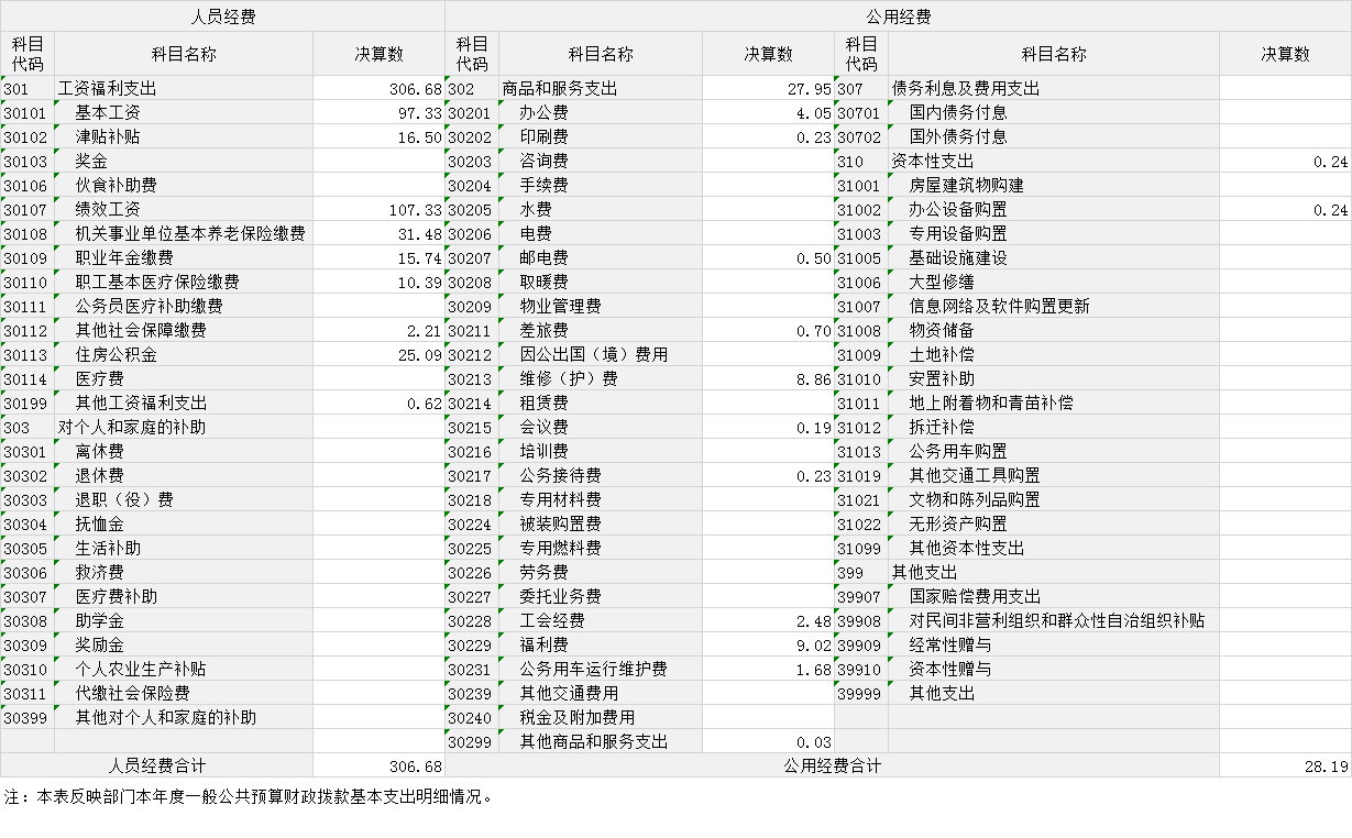 公用经费28.19万元,主要包括:办公费、印刷费、手续费、邮电费、差旅费、维修(护)费、会议费、公务接待费、工会经费、福利费、公务用车运行维护费、其他商品和服务支出、办公设备购置。