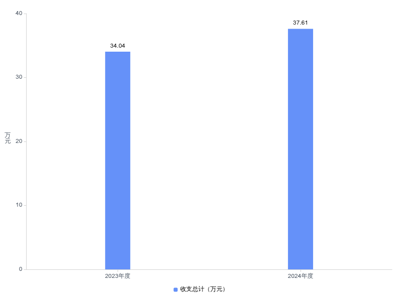 2024年度收、支总计均为37.61万元。与2023年度相比,收、支总计增加3.57万元,增长10.5%,主要原因是2023年度2-4季度岗位补贴实际在2024年度拨款支出。