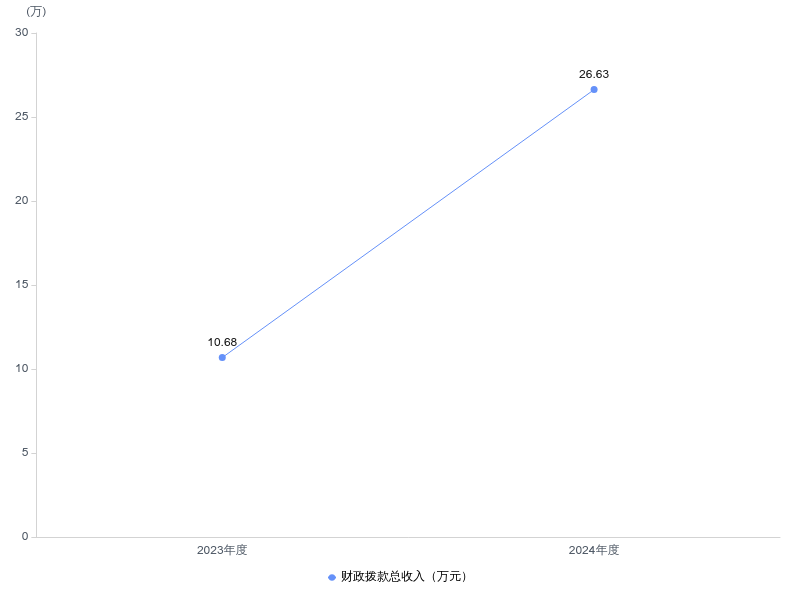 2024年度财政拨款收、支总计均为26.63万元。与2023年度相比,财政拨款收、支总计各增加15.95万元,增长149.3%。主要原因是2023年度2-4季度岗位补贴实际在2024年度拨款支出。