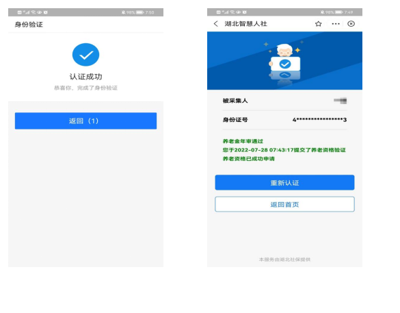 7. 如提示录制失败,点击“重新认证”按钮,退回重新录制;如提示成功,按下方提示时间,来年再次进行认证
