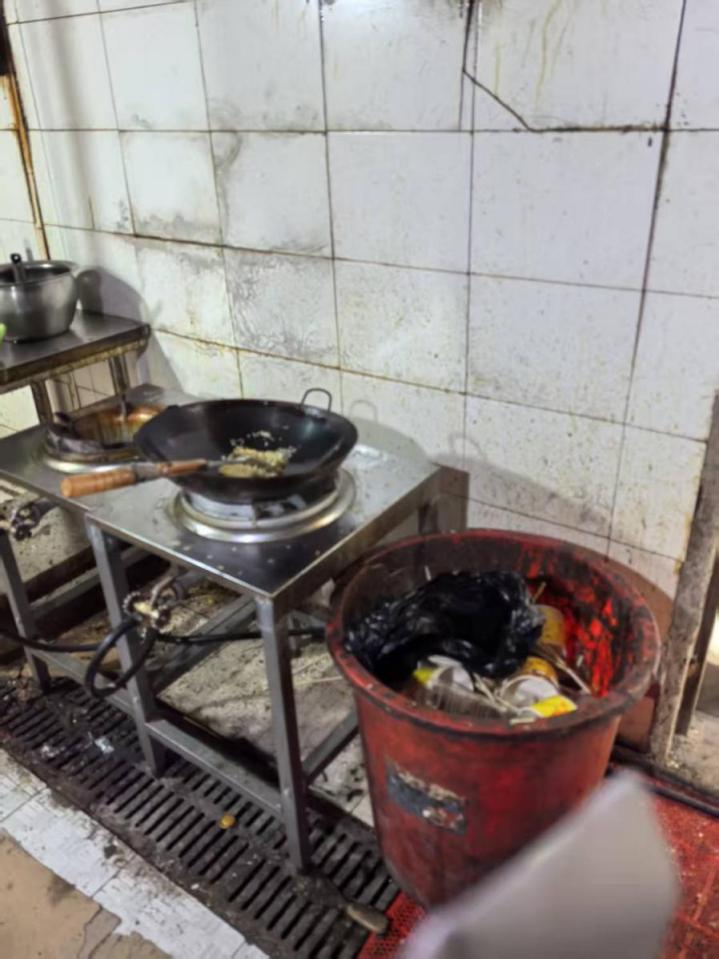 入榜理由:操作间卫生环境不佳,垃圾桶未加盖,墙面油污严重