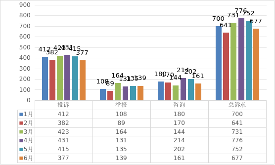 投诉 | 举报 | 咨询 | 总量 | 投诉 | 举报 | 咨询 | 总量 | |