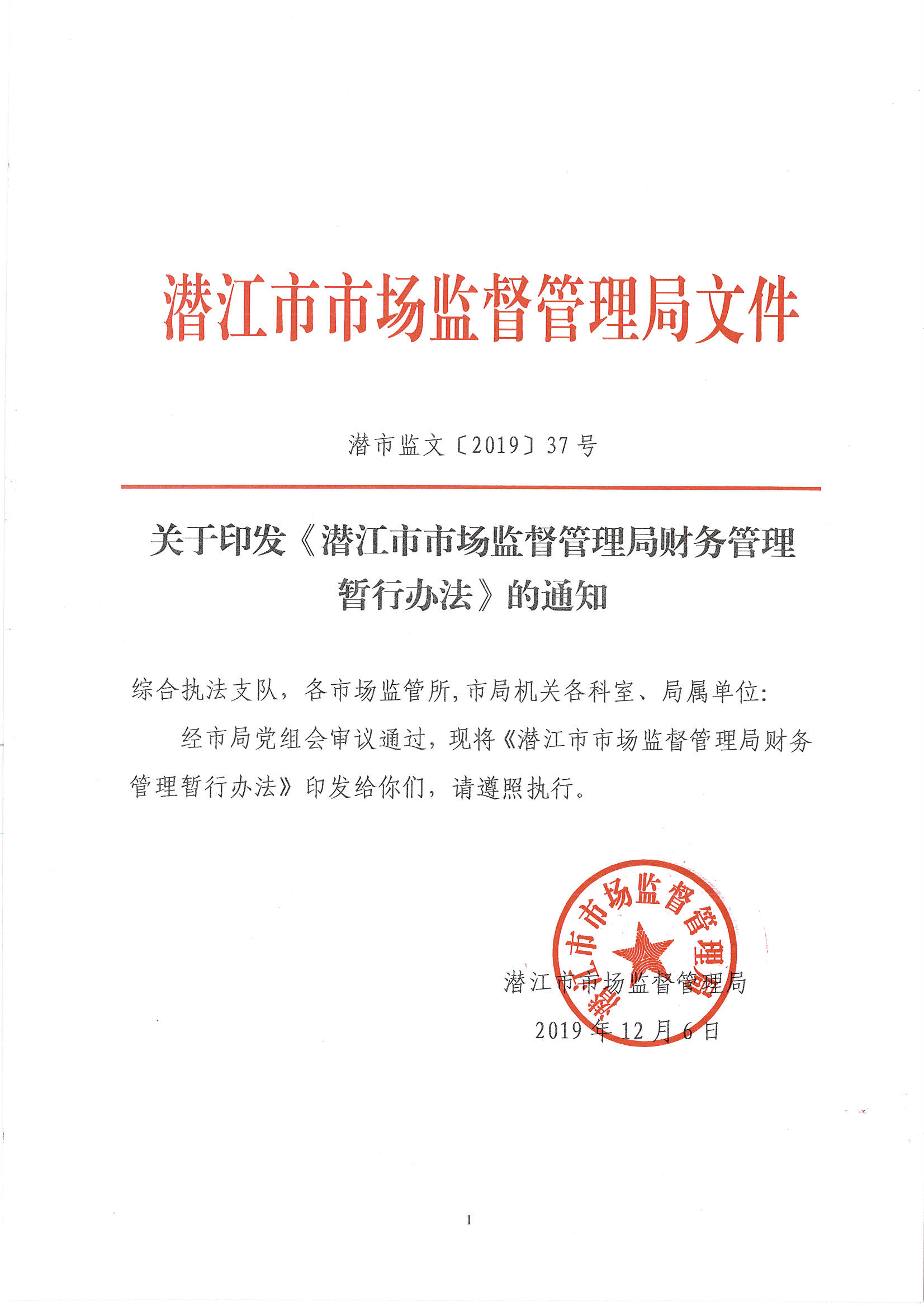潜江市市场监督管理局财务管理暂行办法