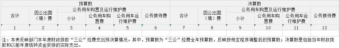 (十六)“三公”经费:纳入财政一般公共预算管理的“三公”经费,是指市直部门用一般公共预算财政拨款安排的因公出国(境)费、公务用车购置及运行费和公务接待费。其中,因公出国(境)费反映单位公务出国(境)的国际旅费、国外城市间交通费、住宿费、伙食费、培训费、公杂费等支出;公务用车购置及运行费反映单位公务用车购置支出(含车辆购置税、牌照费)及燃料费、维修费、过桥过路费、保险费、安全奖励费用等支出;公务接待费反映单位按规定开支的各类公务接待(含外宾接待)费用。