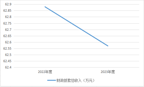 2023年度财政拨款收、支总计均为62.57万元。与2022年度相比,财政拨款收、支总计各减少5.65万元,下降8%。主要原因是公证业务办证数量和收费降低,同时公证人员经费减少。