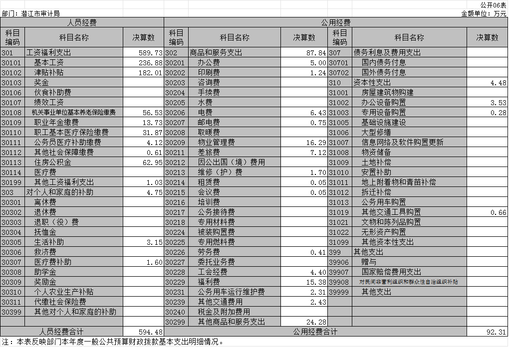 公用经费92.31万元,主要包括:办公费、印刷费、咨询费、水费、电费、邮电费、物业管理费、差旅费、维修(护)费、租赁费、会议费、培训费、公务接待费、劳务费、委托业务费、工会经费、福利费、公务用车运行维护费、其他交通费用、税金及附加费用、其他商品和服务支出、办公设备购置、专用设备购置、信息网络及软件购置更新、其他资本性支出。