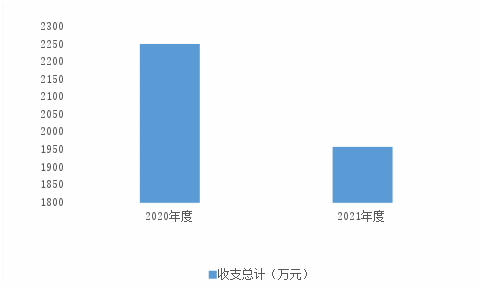 2021年度收、支总计均为1957.80万元。与2020年度相比,收、支总计各减少294.9万元,下降13.09%,主要原因是财政拨款较2020年减少。