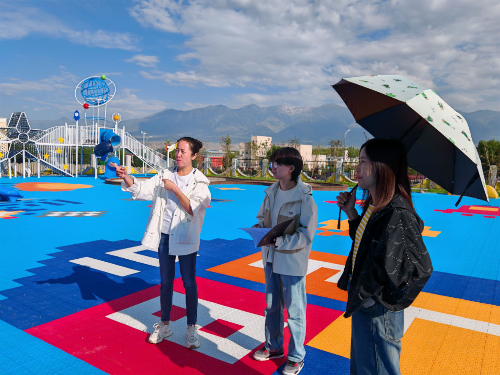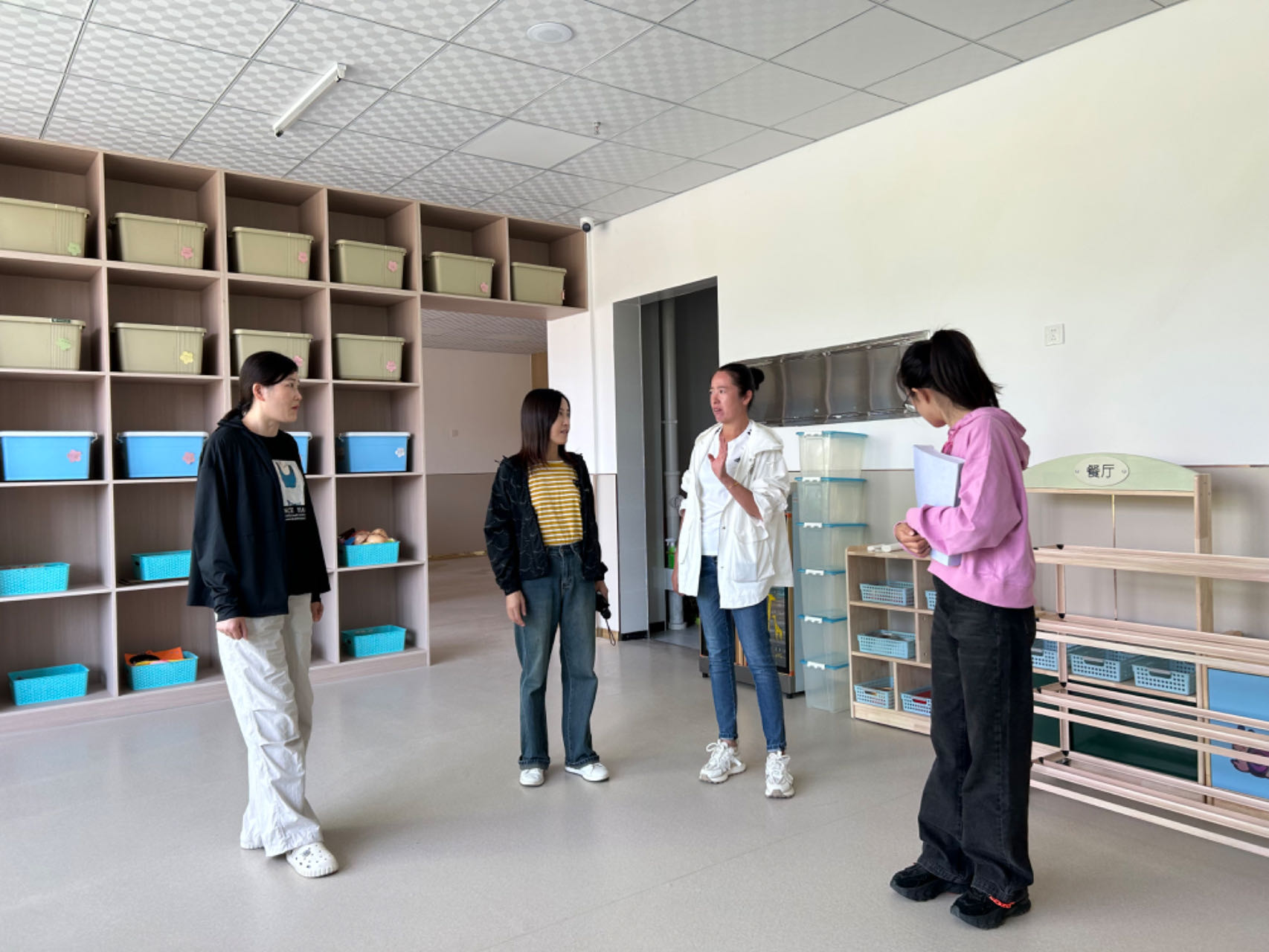 图为审计人员查看援建幼儿园配套设施建设情况
