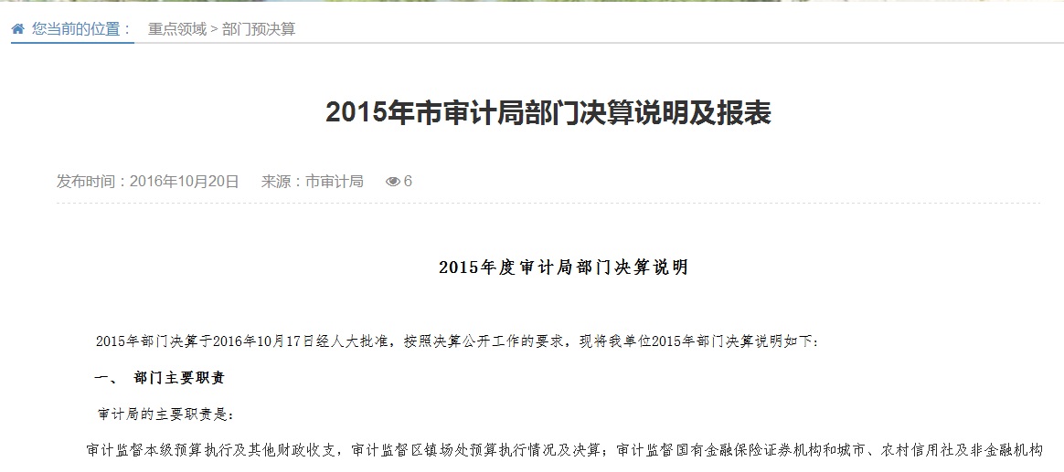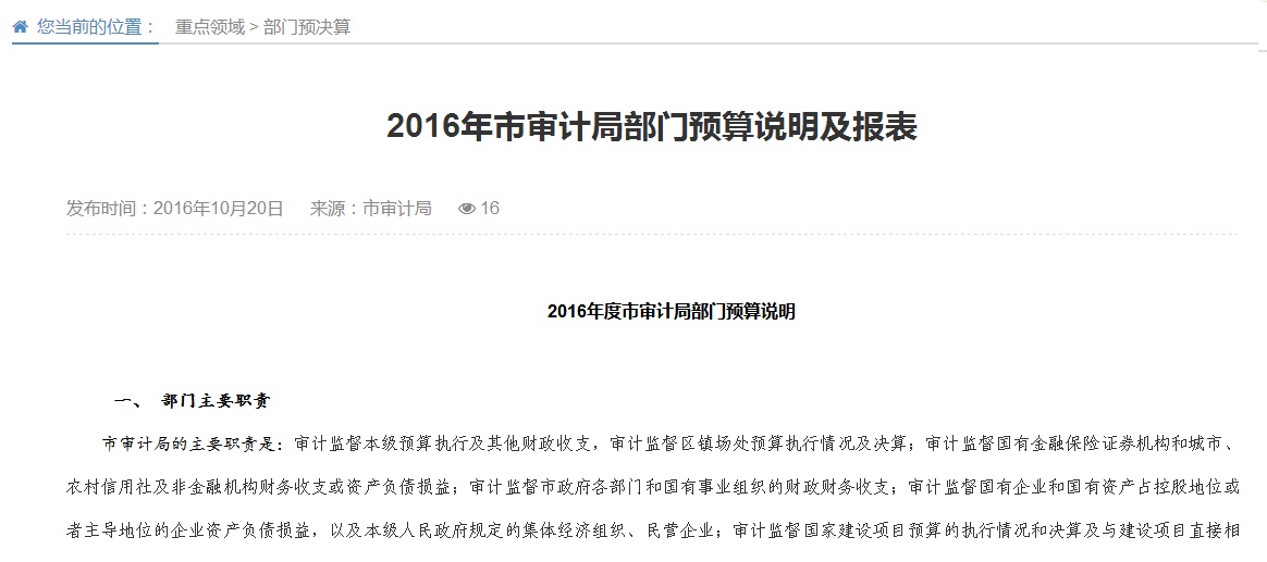2016年,我局严格执行《中华人民共和国政府信息公开条例》及市政府相关文件要求,结合审计法定职能,认真开展审计信息公开工作,取得较好成效。相关工作情况如下: