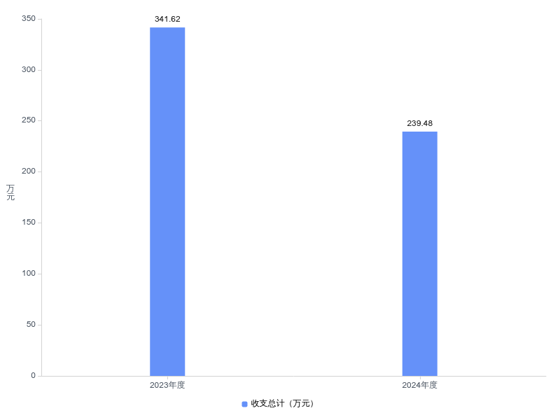 2024年度收、支总计均为239.48万元。与2023年度相比,收、支总计减少102.14万元,下降29.9%,主要原因是2024年度有人员退休,2023年度年初结转和结余金额较大。