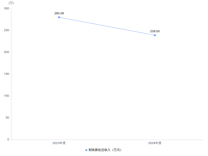 2024年度财政拨款收、支总计均为239.00万元。与2023年度相比,财政拨款收、支总计各减少41.08万元,下降14.7%。主要原因是2024年度有人员退休。
