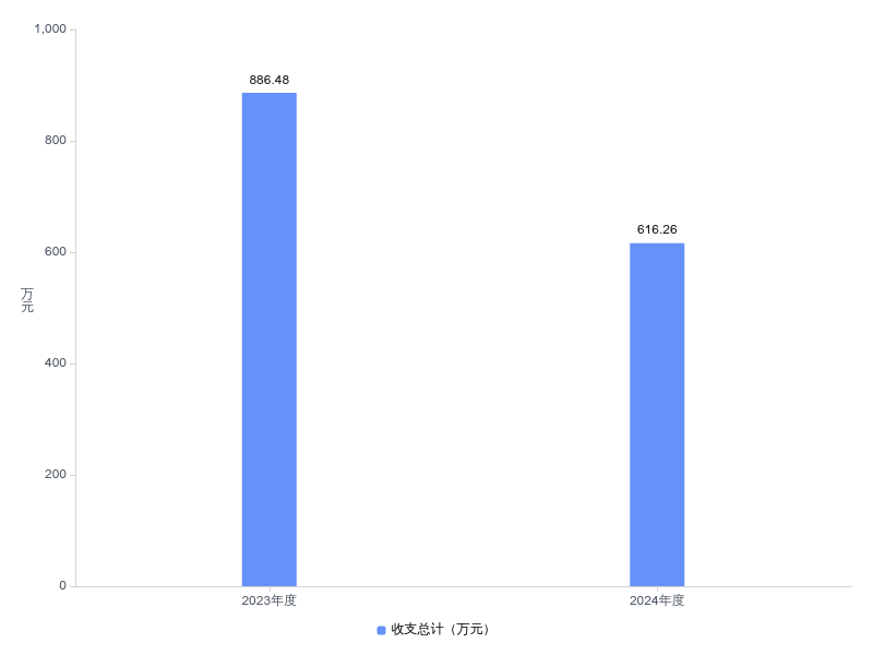 2024年度收、支总计均为616.26万元。与2023年度相比,收、支总计减少270.22万元,下降30.5%,主要原因是2024年度有人员退休,2023年项目资金拨款金额较大。