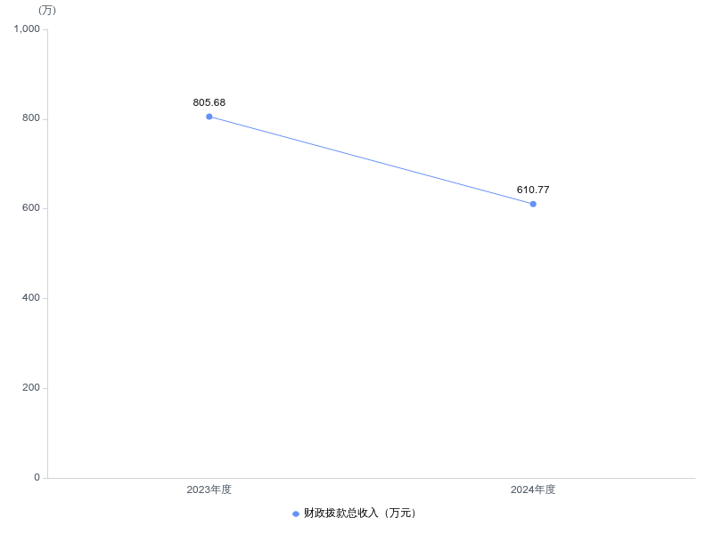 2024年度财政拨款收、支总计均为610.77万元。与2023年度相比,财政拨款收、支总计各减少194.91万元,下降24.2%。主要原因是2024年度有人员退休,2023年项目资金拨款金额较大。