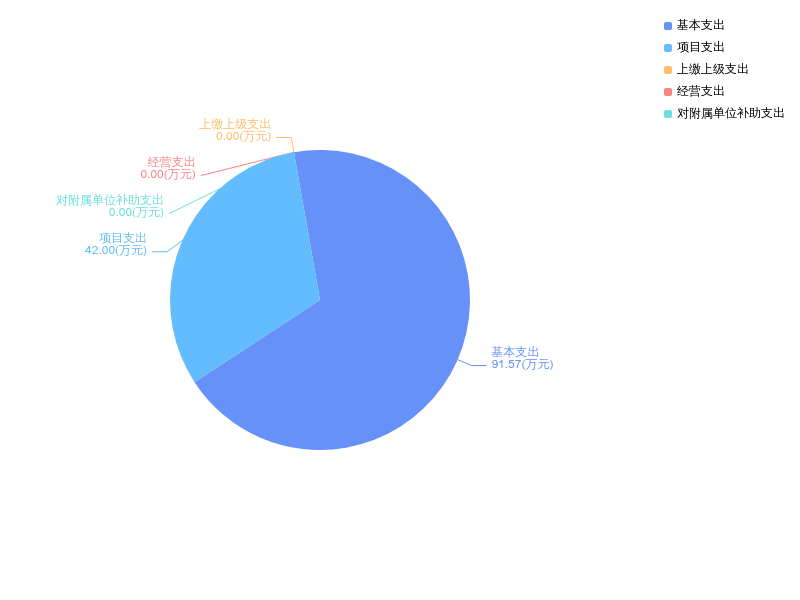 2024年度支出合计133.57万元,与2023年度相比,支出合计减少67.31万元,下降33.5%。其中:基本支出91.57万元,占本年支出68.6%;项目支出42.00万元,占本年支出31.4%;上缴上级支出0.00万元,占本年支出0.0%;经营支出0.00万元,占本年支出0.0%;对附属单位补助支出0.00万元,占本年支出0.0%。