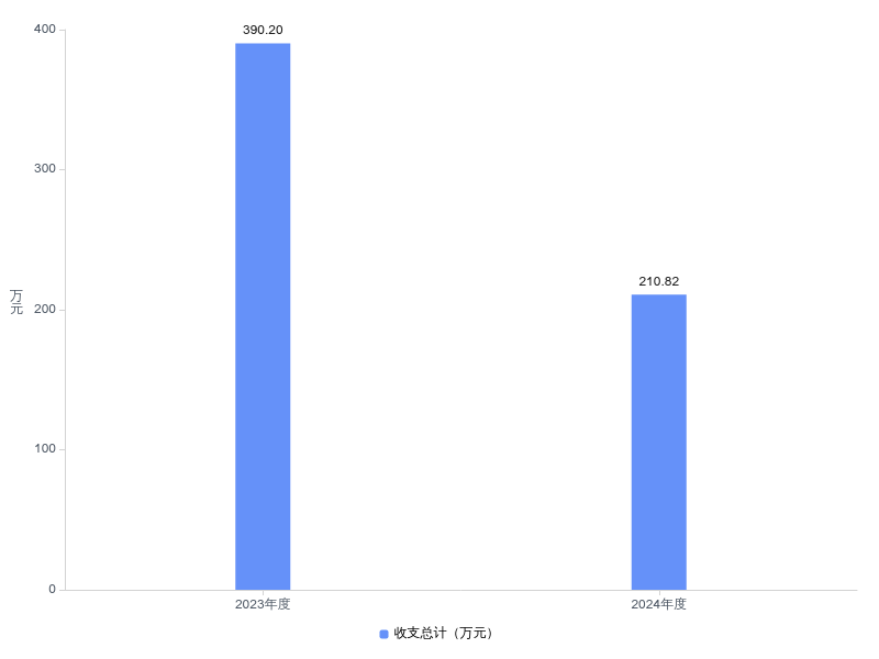 2024年度收、支总计均为210.82万元。与2023年度相比,收、支总计减少179.38万元,下降46.0%,主要原因是一是上年度补缴了单位职业年金利息支出及补发以前度的绩效奖励支出,本年无此项收支;二是上年有新增水利救灾资金项目,本年无此项收支;三是本单位机构体制改革后部分人员下放乡镇,本年度的收支相对应减少。