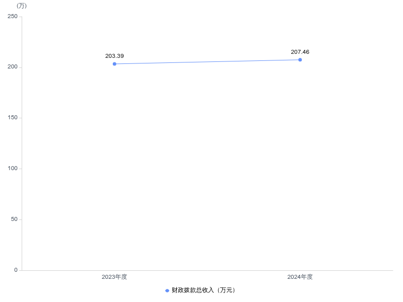 2024年度财政拨款收、支总计均为207.46万元。与2023年度相比,财政拨款收、支总计各增加4.07万元,增长2.0%。主要原因是本年单位自有资金收支减少,财政拨款收支相比上年占比较高。
