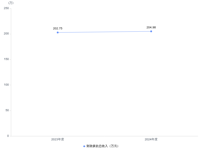 2024年度财政拨款收、支总计均为204.98万元。与2023年度相比,财政拨款收、支总计各增加2.23万元,增长1.1%。主要原因是本年单位自有资金收支减少,财政拨款收支相比上年占比较高。