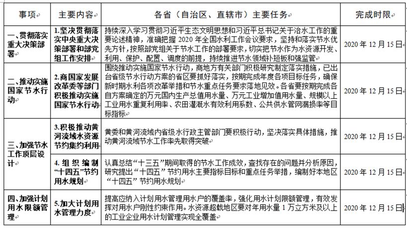 为深入贯彻2020年全国水利工作会议精神,认真落实部党组关于节约用水工作的各项部署,进一步明确任务、落实责任,水利部制定了2020年水利系统节约用水工作要点和重点任务清单。