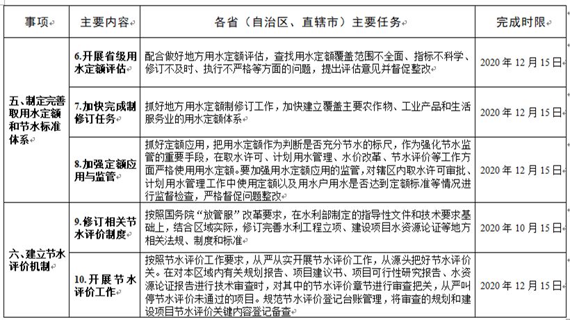 5.围绕“靠河湖分水,从总体上促进节水”,重点抓计划用水限额管理。调研各地区、各流域管理机构计划用水管理需求,研究提出修订《计划用水管理办法》的思路报告。各流域管理机构和各省级水行政主管部门要加大计划用水管理力度,提高应纳入计划用水管理用水户的覆盖率,强化用水计划限额管理,有效发挥对用水户刚性约束作用。水资源超载地区要对年用水量1万立方米及以上的工业企业用水计划管理实现全覆盖。
