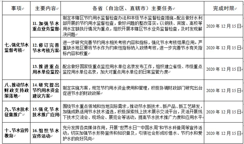 2.大力落实国家节水行动方案。积极推动建立节约用水工作部际协调机制,会同国家发展改革委推动国家节水行动实施,加强部门统筹协调,开展节水行动实施情况监督检查。各省级水行政主管部门要积极推动实施国家节水行动,已出台省级节水行动方案的省(自治区、直辖市)要抓好落实,尚未出台省级节水行动方案的省(自治区、直辖市)应尽早出台并抓好落实,按期完成年度各项目标任务。