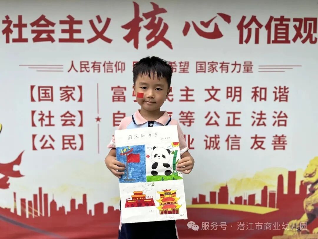 在庆祝中华人民共和国成立76周年之际,为深入贯彻落实《新时代爱国主义教育实施纲要》精神,切实将爱国主义教育融入幼儿启蒙阶段,商业幼儿园开展了“金秋童画月 盛世中国红”系列主题教育活动。