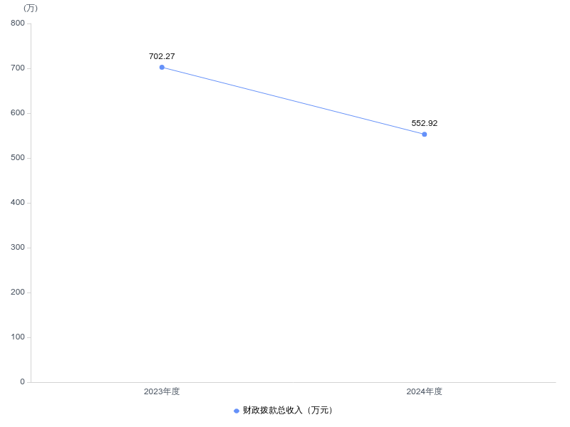 2024年度财政拨款收、支总计均为552.92万元。与2023年度相比,财政拨款收、支总计各减少149.35万元,下降21.3%。主要原因是幼儿保教费收入减少和资产出租出借收入减少。