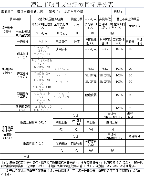 2024年度潜江市商业幼儿园公办幼儿园生均经费项目绩效评价自评表和自评报告: