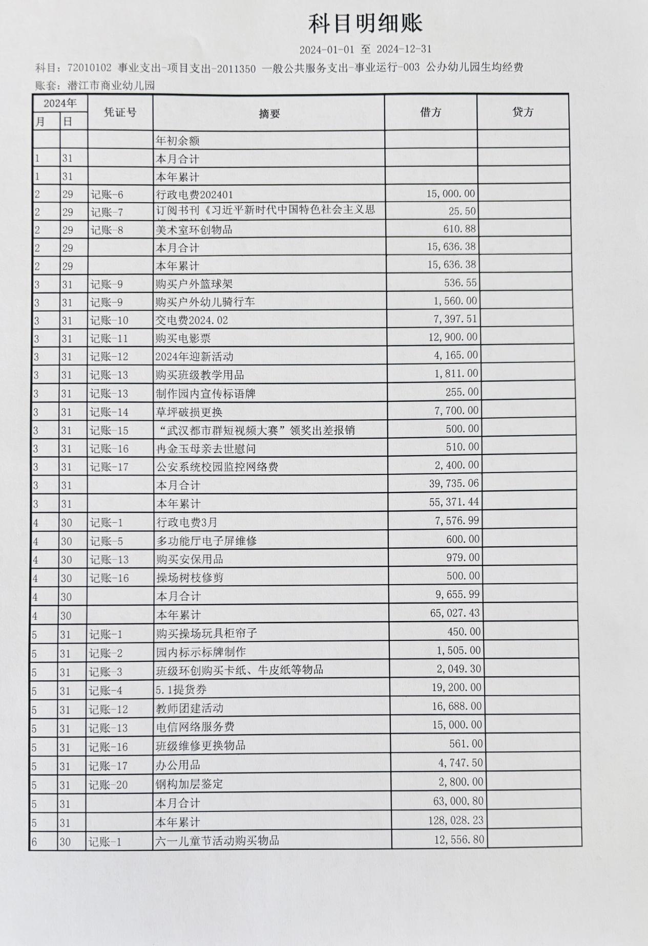 商业幼儿园公办幼儿园生均经费科目明细账2张。