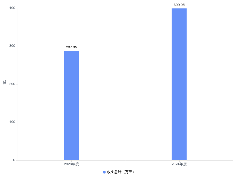 2024年度收、支总计均为399.05万元。与2023年度相比,收、支总计增加111.70万元,增长38.9%,主要原因是代收代付所属企业养老保险资金导致。
