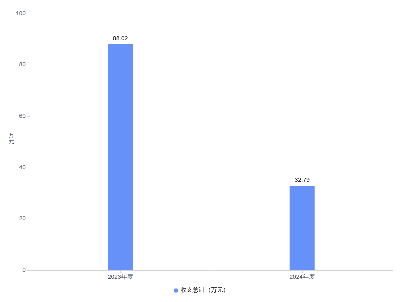 2024年度收、支总计均为32.79万元。与2023年度相比,收、支总计减少55.23万元,下降62.7%,主要原因是单位经费不足,缩减相应开支。