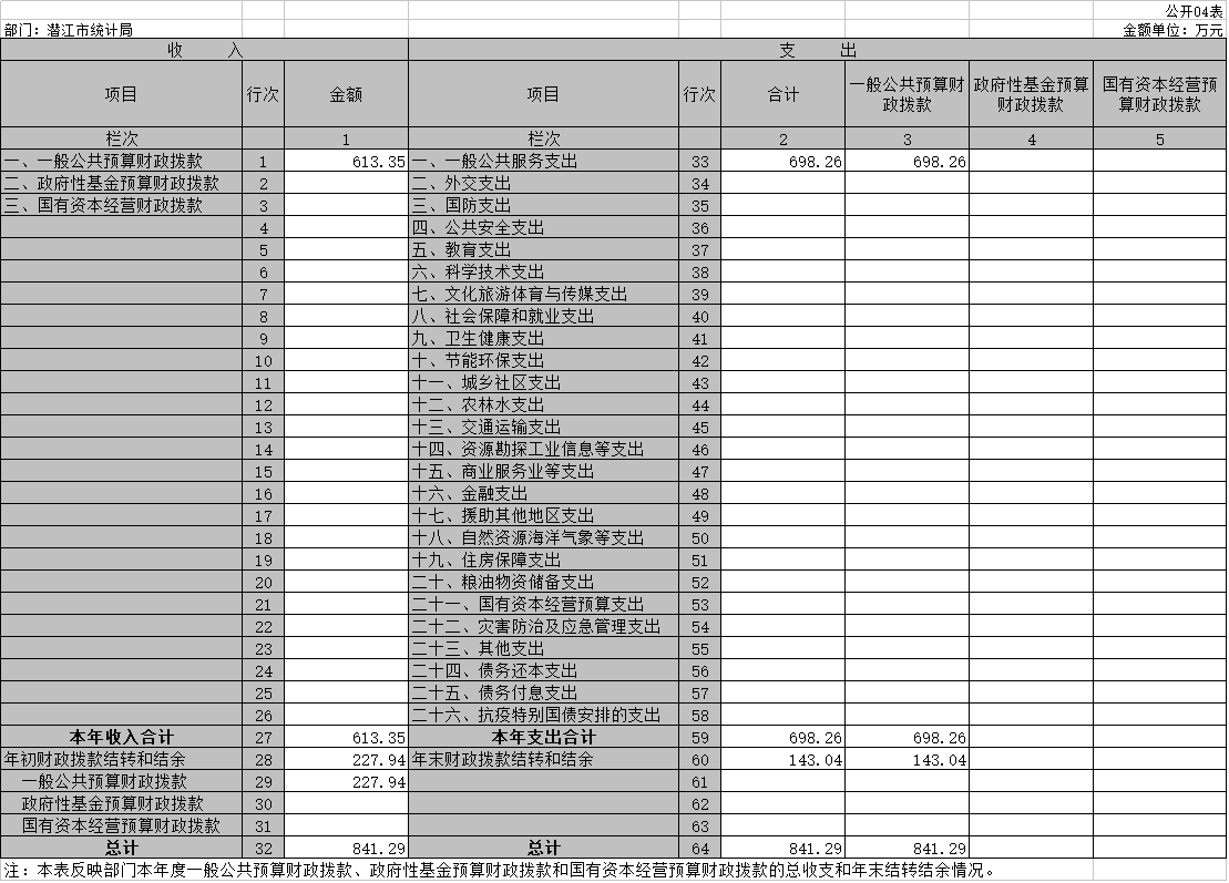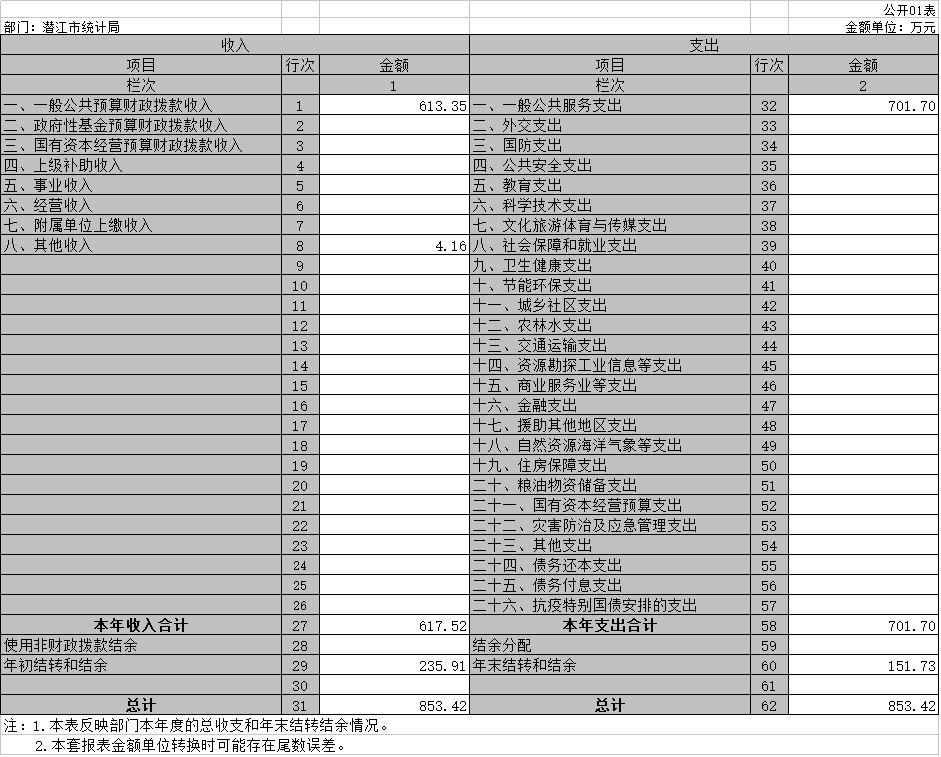第二部分 潜江市统计局2021年度部门决算表