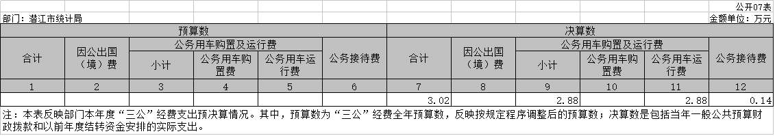 七、一般公共预算财政拨款“三公”经费支出决算表