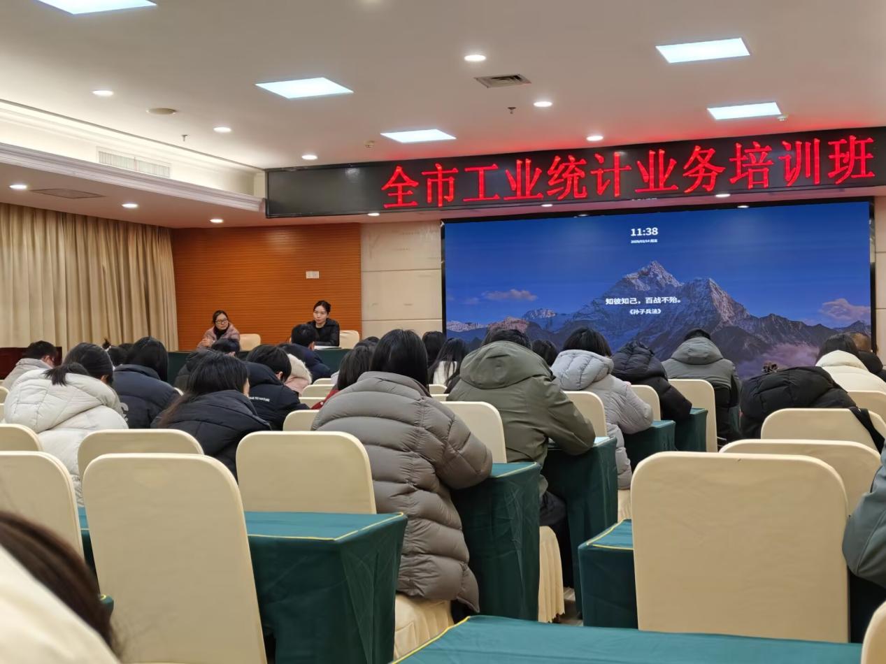 2025年2月14日,潜江市统计局召开全市工业统计培训班,会议深入学习贯彻习近平总书记关于统计工作的指示批示精神,开展了2024年工业统计年报、2025年工业、能源统计定报培训工作,各区镇街道统计站工业统计负责人等50余人参加会议,市统计局党组副书记胡萍出席会议并讲话。