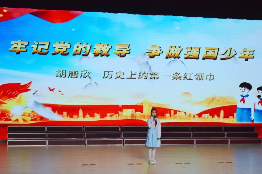 2024年潜江市“红领巾讲解员大赛”获奖选手胡唐欣以“历史上的第一条红领巾”为主题进行宣讲,带领大家回顾了红领巾的起源和意义,让队员们深刻感受到红领巾所承载的使命。