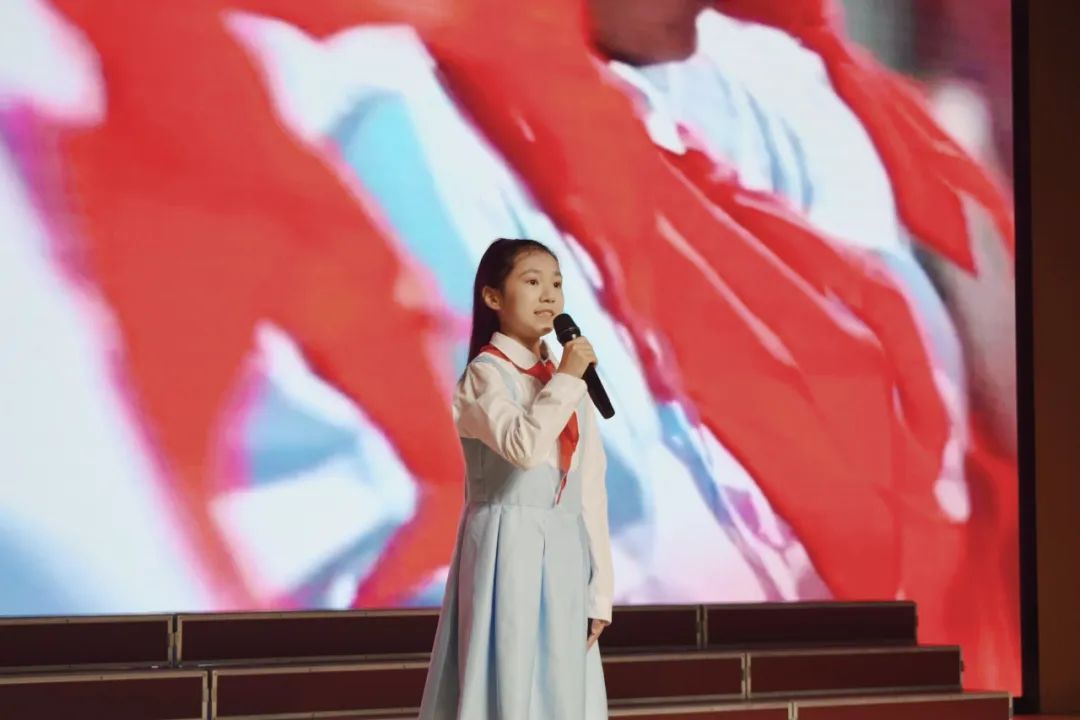 鲜红的队旗,嘹亮的号角,主题队日在激昂的入队仪式中拉开序幕。全体少先队员高唱《中国少年先锋队队歌》,嘹亮的队歌慷慨激昂,唱出了新时代少先队员昂扬进取的精神风貌。