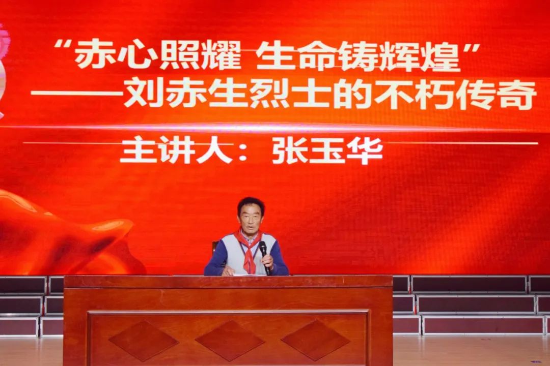 “湖北好人”2024年第四季度上榜人物、潜江市诗词楹联学会龙湾镇分会党支部书记张玉华,以“赤心照耀 生命铸辉煌——刘赤生烈士的不朽传奇”为主题进行宣讲,生动讲述了刘赤生烈士的英勇事迹,激发了队员们的爱国情怀和奋斗精神。