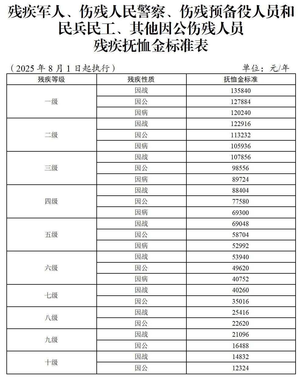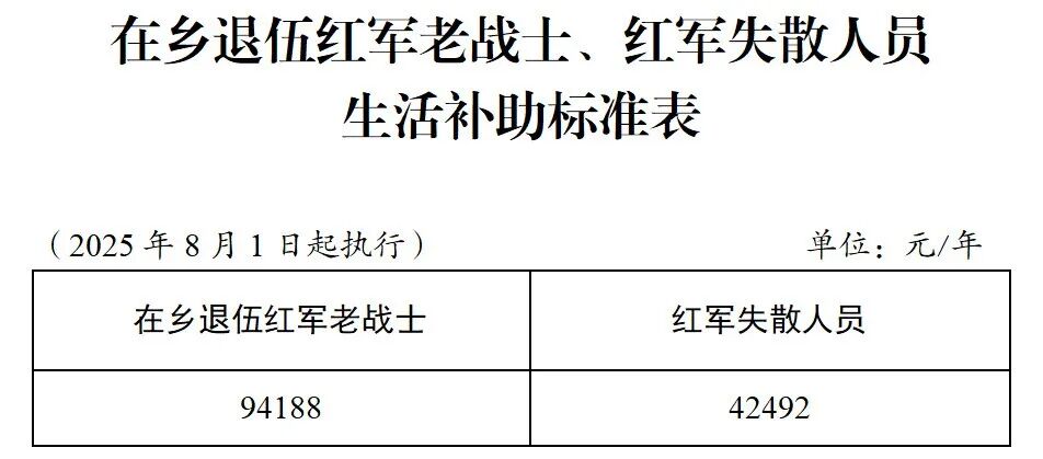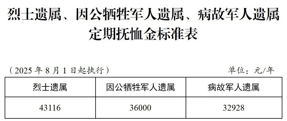 退役军人事务部、财政部日前发出通知,明确自2025年8月1日起,再次提高部分退役军人和其他优抚对象等人员抚恤和生活补助标准。